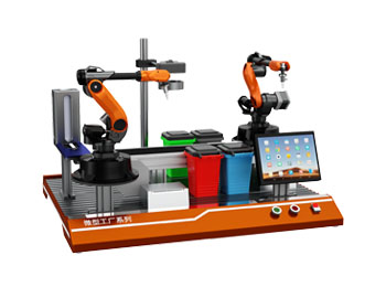 采用输送带、2台工业机器人、机器视觉系统、以及传感器模块组成智能分拣自动化单元,能够完成多种视觉应用的集成与自动化,同时采用双机器人协作分拣。功能包括垃圾分拣神经网络学习、机器人协作与自动化集成、形状分拣与组合、二维码识别与实验、OCR文字识别与应用、边缘计算远程数据采集等。