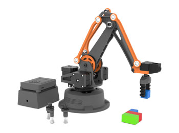 桌面型四轴多连杆码垛系统,采用典型的工业机器人的串联+并联结构,1:1等比例缩小,机器人每个关节均采用高精密减速步进电机驱动,内置机器人嵌入式驱动系统,配套完整的机器人运动学、正逆运算、加减速优化等,能够实现搬运、码垛、雕刻、组装等多种机器人自动化应用的任务。